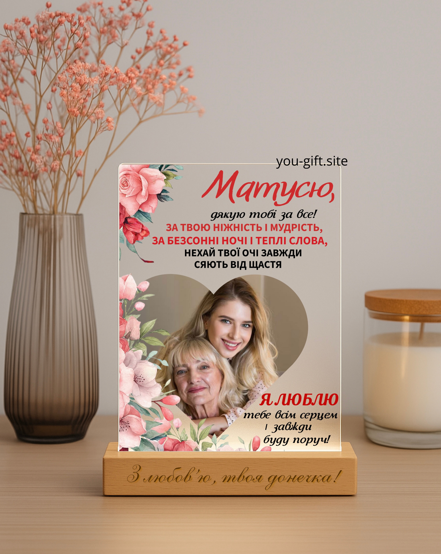 Ви можете обрати будь-який текст або зображення для гравіювання – це може бути ім’я, фото або будь-який інший дизайн за вашим бажанням.